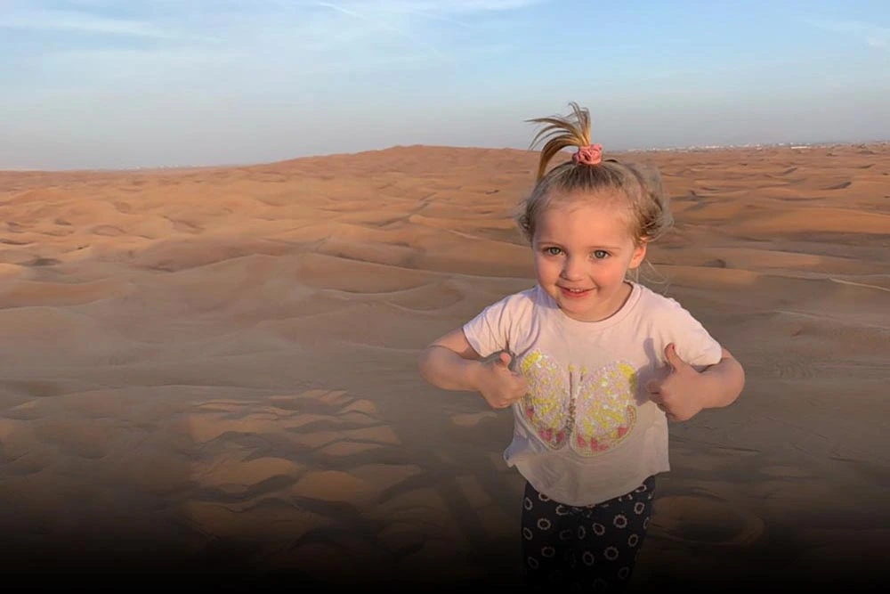 في الصباح الباكر، يتم استقبالك بسيارة مريحة من الفندق. تنطلق الرحلة إلى صحراء دبي حيث تبدأ الجولة بتطعيس مشوّق في الكثبان الرملية مع سائق محترف.