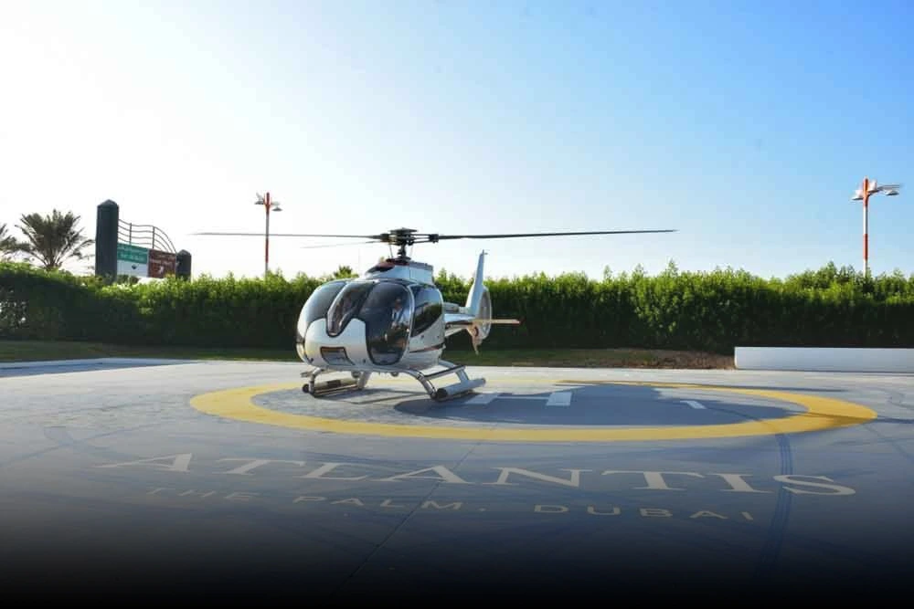 الموقع يكون في مهبط هليكوبتر معتمد في دبي، غالباً بالقرب من نخلة جميرا أو أحد الشواطئ، ويتم إرسال اللوكيشن بدقة بعد تأكيد الحجز.