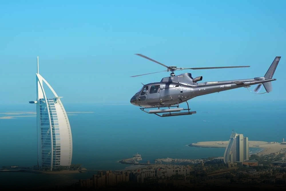 ✅ جولة هليكوبتر سياحية فوق دبي (مدة تقريبية تختلف حسب الباقة – مثلاً ١٢ أو ١٥ أو ٢٠ دقيقة)