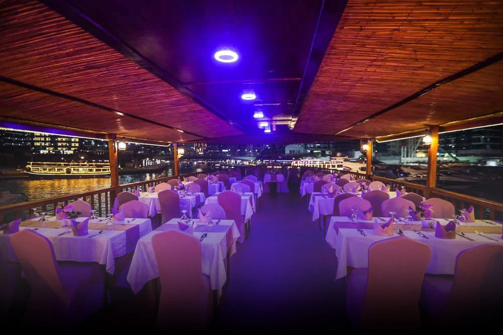 Embárcate en un cautivador viaje a través de la impresionante Marina de Dubái con el Crucero de Cena en Dhow por la Marina de Desert Fun Tourism. Sube a bordo de nuestro tradicional barco dhow de madera y navega por las relucientes aguas de la Marina, enmarcadas por imponentes rascacielos y deslumbrantes luces de la ciudad. Deléitate con una suntuosa cena buffet que ofrece una amplia variedad de platos internacionales, expertamente preparados por nuestros chefs. Sumérgete en el encantador ambiente de música en vivo y entretenimiento mientras disfrutas de vistas panorámicas de los emblemáticos lugares de interés de Dubái. Con Desert Fun Tourism, date el gusto de una noche inolvidable de lujo, cena y turismo en nuestro Crucero de Cena en Dhow por la Marina.
