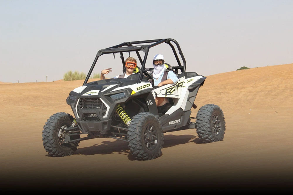 Offrez-vous une heure de pure adrénaline avec notre Safari en buggy Polaris RZR 1000cc – 2 places – 60 minutes. Ce véhicule tout-terrain ultra-puissant est parfait pour explorer les dunes rouges de Dubaï en duo. Que vous soyez au volant ou en passager, vous vivrez une aventure sauvage, fun et inoubliable. Réservez maintenant avec Desert Fun et partez à l’assaut du désert !