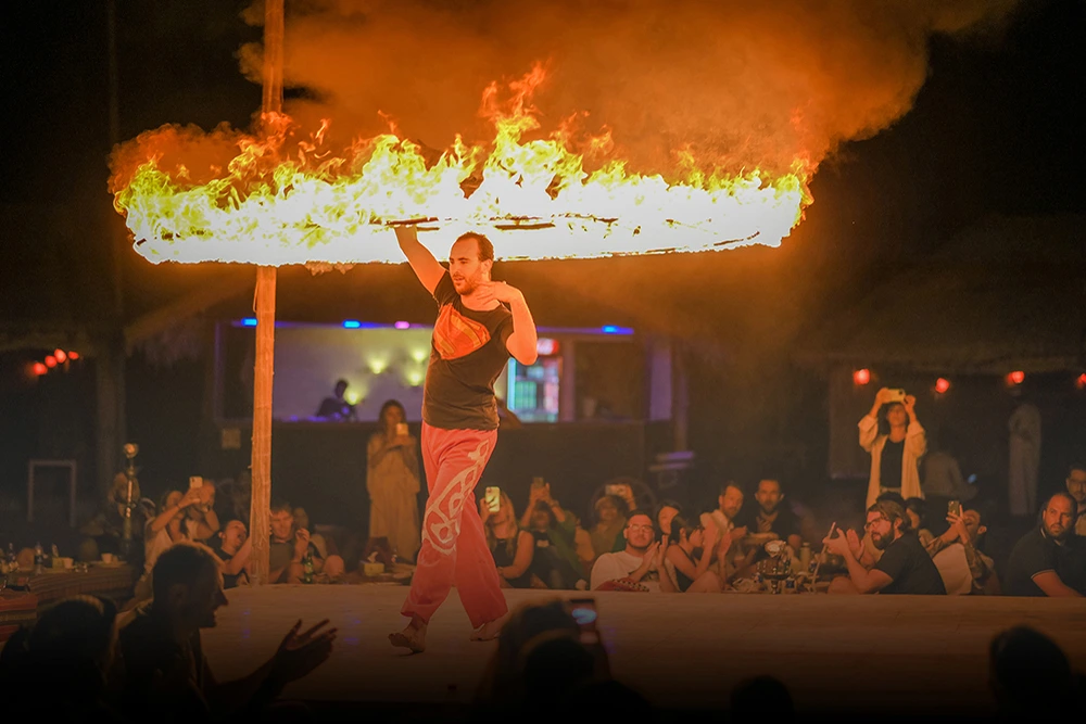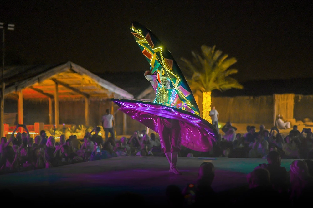 Прибытие в лагерь, где вас ждёт ужин, хна, шоу и фото в арабской одежде.