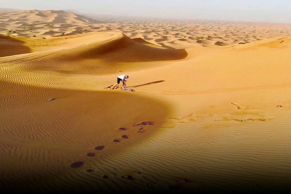 Вас ждёт расширенная программа дюн-башинга в живописных дюнах Лахбаб, фотостопы на закате, катание на верблюде, сендбординг, освежающие напитки и отдых в тишине пустыни. Без ужина и шоу — только песок, мощный 4×4 и ваше собственное пространство.