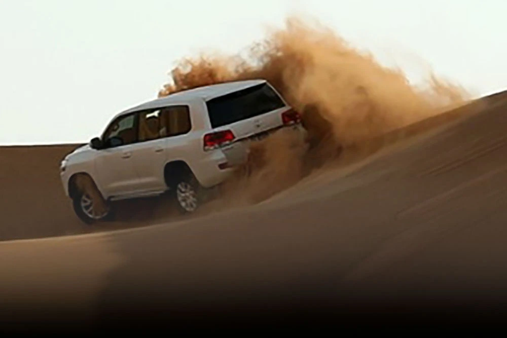 On arrival at the edge of the desert, the driver will adjust tire pressure and prepare the vehicle for the sand.