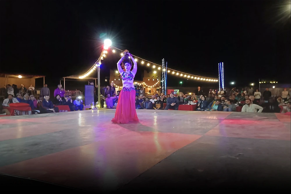 Enjoy henna tattoosshisha, and falcon photos, followed by an open buffet BBQ dinner with live cooking and three live shows — Tanourabelly dance, and fire performance.