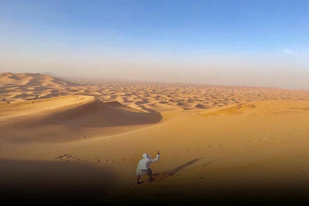 After the camel ride, buckle in for exciting dune bashing through towering red dunes. Follow that with some sandboarding funβ€”glide down slopes and capture those action shots!