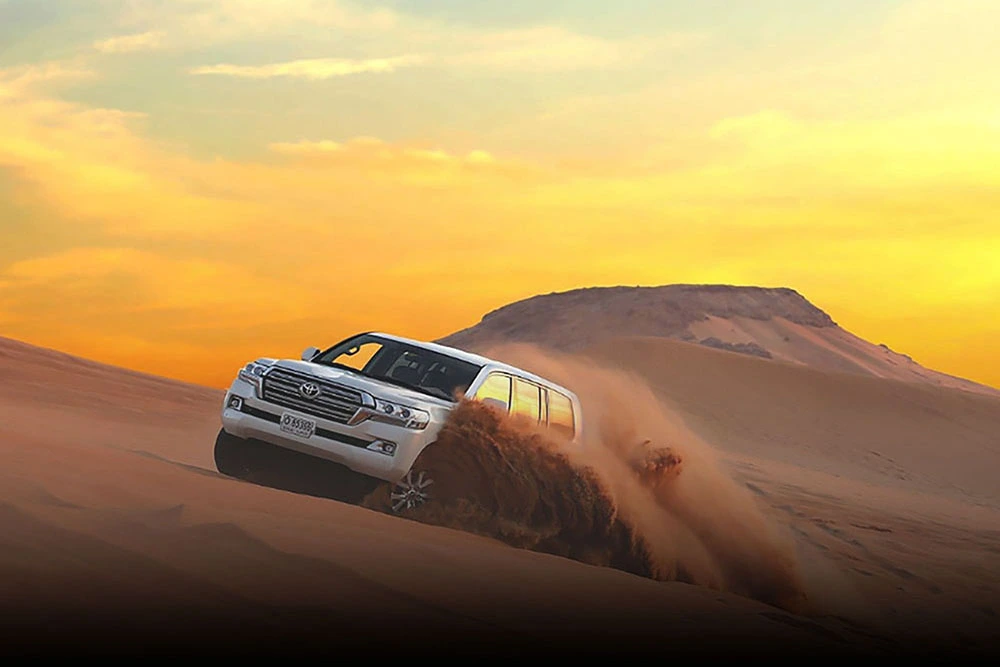 Your driver picks you up in a private or shared air-conditioned 4×4 Land Cruiser and takes you to the Lahbab Red Dunes, Dubai’s most scenic desert region.