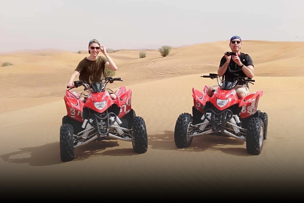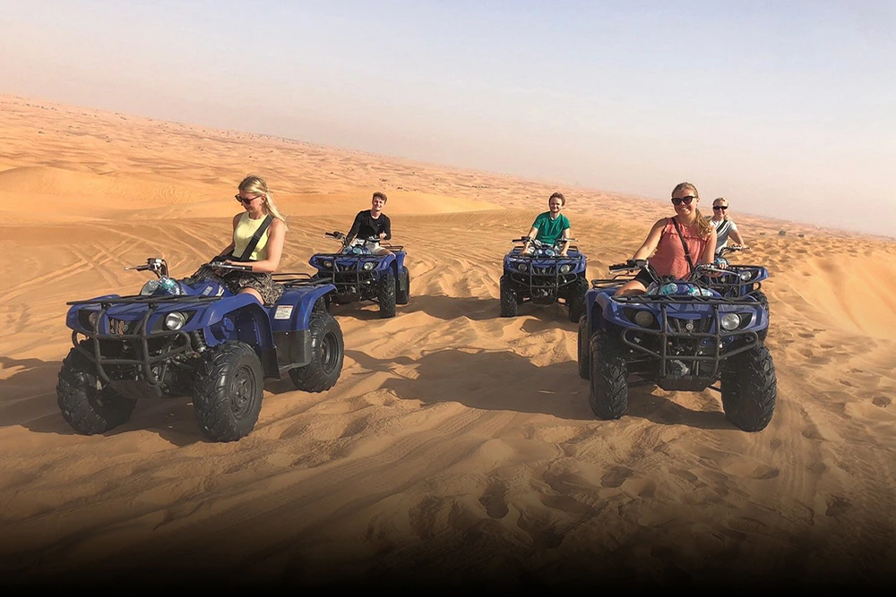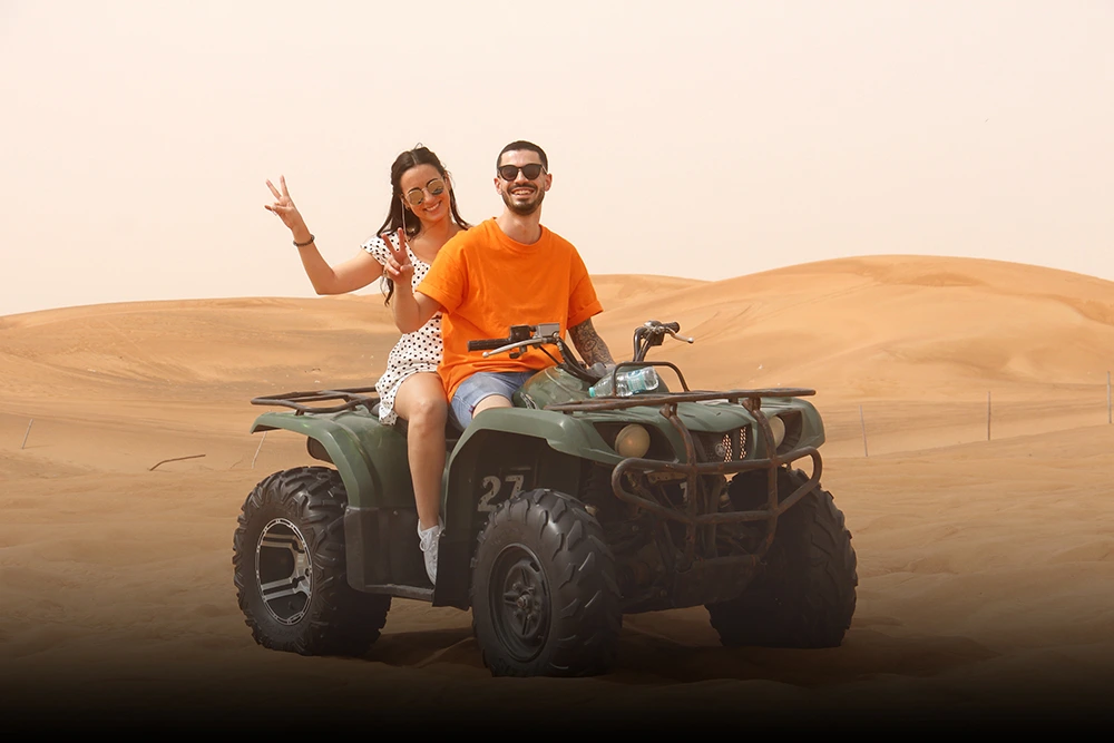 Hop on a 270cc quad bike and cruise through Dubaiโs golden dunes in a fun, beginner-friendly off-road experience. Perfect for first-timers & familiesโbook your desert ride now with Desert Fun!