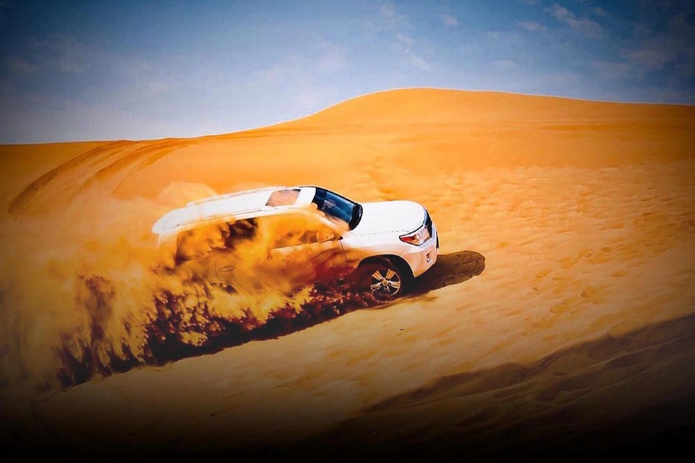 Start your desert evening with a comfortable 4ร4 pickup from your hotel. Drive to Dubaiโs scenic Lahbab Desert for your adventure.